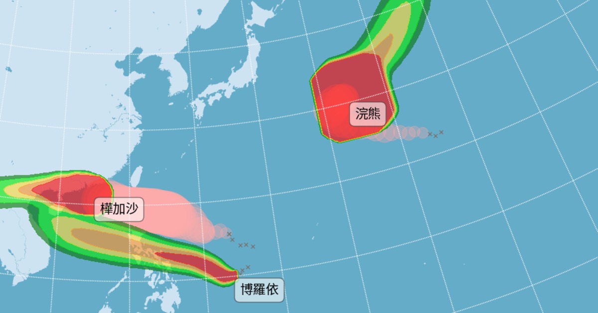 目前海面上是三颱共舞,氣象專家林得恩在臉書粉專「林老師氣象站」表示,樺加沙昨天前腳剛走。今晨博羅依又誕生。目前評估後續博羅依亦將循環境駛流場的導引,穩定朝西北方向前進,在經過菲律賓陸地後,進入南海,對台灣應為無害的颱風。不過三颱共舞(樺加沙、浣熊及博羅依)再現江湖;今天過後,等到樺加沙的回南氣流減弱,以及殘餘外圍水氣耗盡,預估穩定晴朗、高溫炎熱的天氣,應該可以維持到月底(9/25至9/30),若有戶外遊玩活動可以儘快安排。