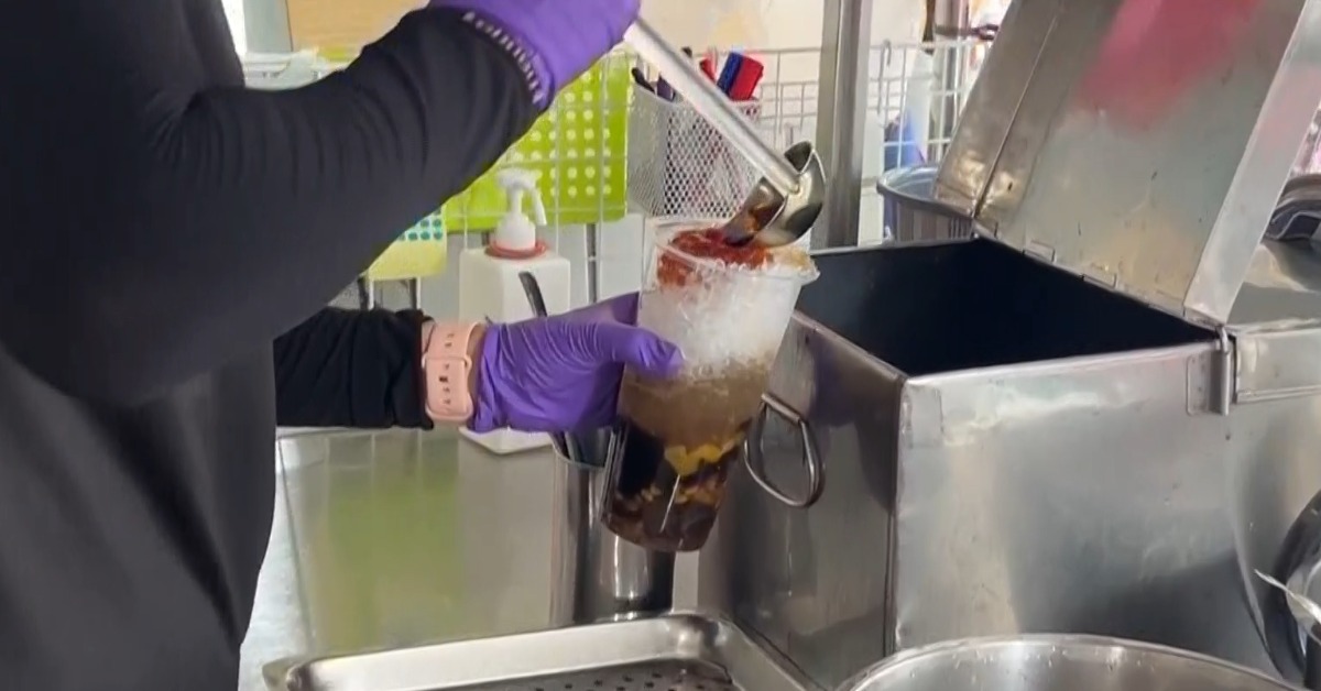 一大盆手工粉圓,加入滿滿配料,粉條仙草鳳梨等等,最後再淋上糖水,這一杯綜合粉圓冰,是專屬高雄老味道之一,攤位換過好幾個地點,最終在六合二路的騎樓落腳,明明每年固定繳交營業稅,攤車和桌椅後方,也留了1.5公尺空間,給行人通行,不過還是屢次遭到民眾檢舉,如今生意已經做不下去了。