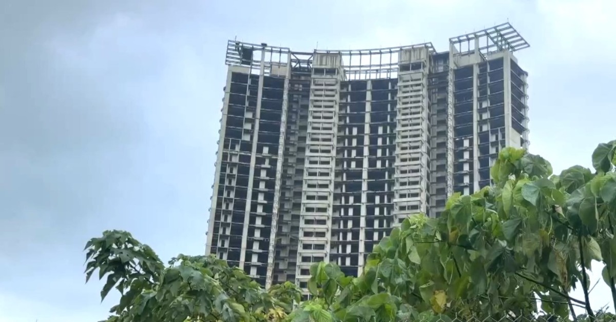 這棟在淡水小坪頂的爛尾樓,地上28層、地下5層,建物面積約1.7萬坪,不過在開工之後,因為銷售狀況不佳,再加上建商財務出現問題,因此就這樣荒廢了20多年。